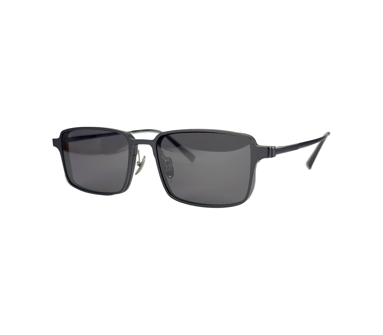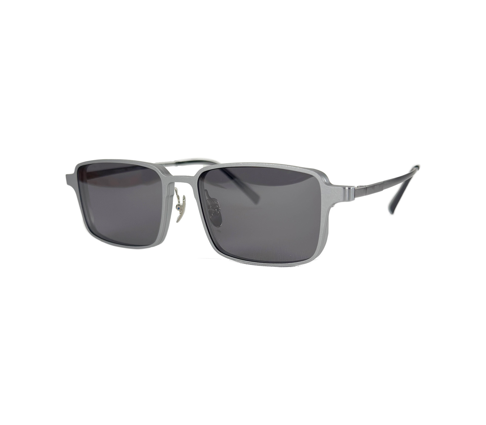 Eyeglasses from the EVL collection with 2 magnetic polarised clipons. One with photocromic lenses and the other plain lens. Clipon eyeglasses for men.
